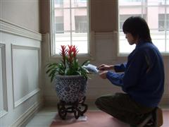 葉拭きまず始に、植物についている埃やごみを取り除きます。植物を傷つけないように、葉を1枚1枚丁寧に拭いてゆきます。